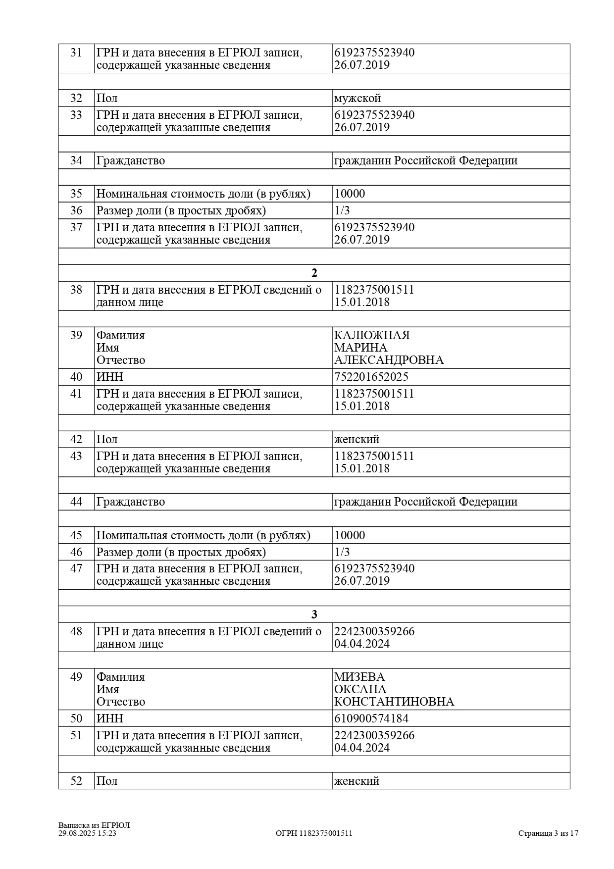 Выписка из ЕГРЮЛ ООО «Детокс»